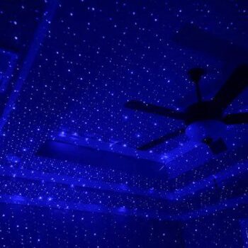 For those questioning the brightness of this projector, it's important to realize its uniqueness. It's not a typical blue laser but acts more like a blacklight, illuminating white surfaces splendidly. It's surprisingly bright and does an excellent job of creating a celestial atmosphere. I highly recommend it for its intended purpose – it truly transforms your space