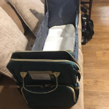 What a unique multi functional travel bag which is a combined diaper bag backpack, bassinet, nappy bag, travel crib, portable baby changing station. With insulated 3 bottle pockets, 5 compartment inside and Concealed waterproof zip pockets at the back and inside, it’s roomy enough to store all baby stuffs, included with removable changing pad/mattress. Thick, durable, machine washable material and foldable easily, this bag is an all in 1 small and light travel bag to accommodate baby needs and mom. It can be worn as shoulder bag, stylist backpack or hanging on a stroller, which makes travel more convenient and easier. I am sold with all the features this bag has and can’t wait to use it for my upcoming baby!