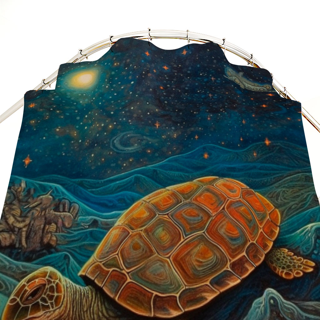 Cartoon Turtle Shower Curtain – Art Print Waterproof Shower Curtain – Cool Trendy Bathroom Shower Curtain