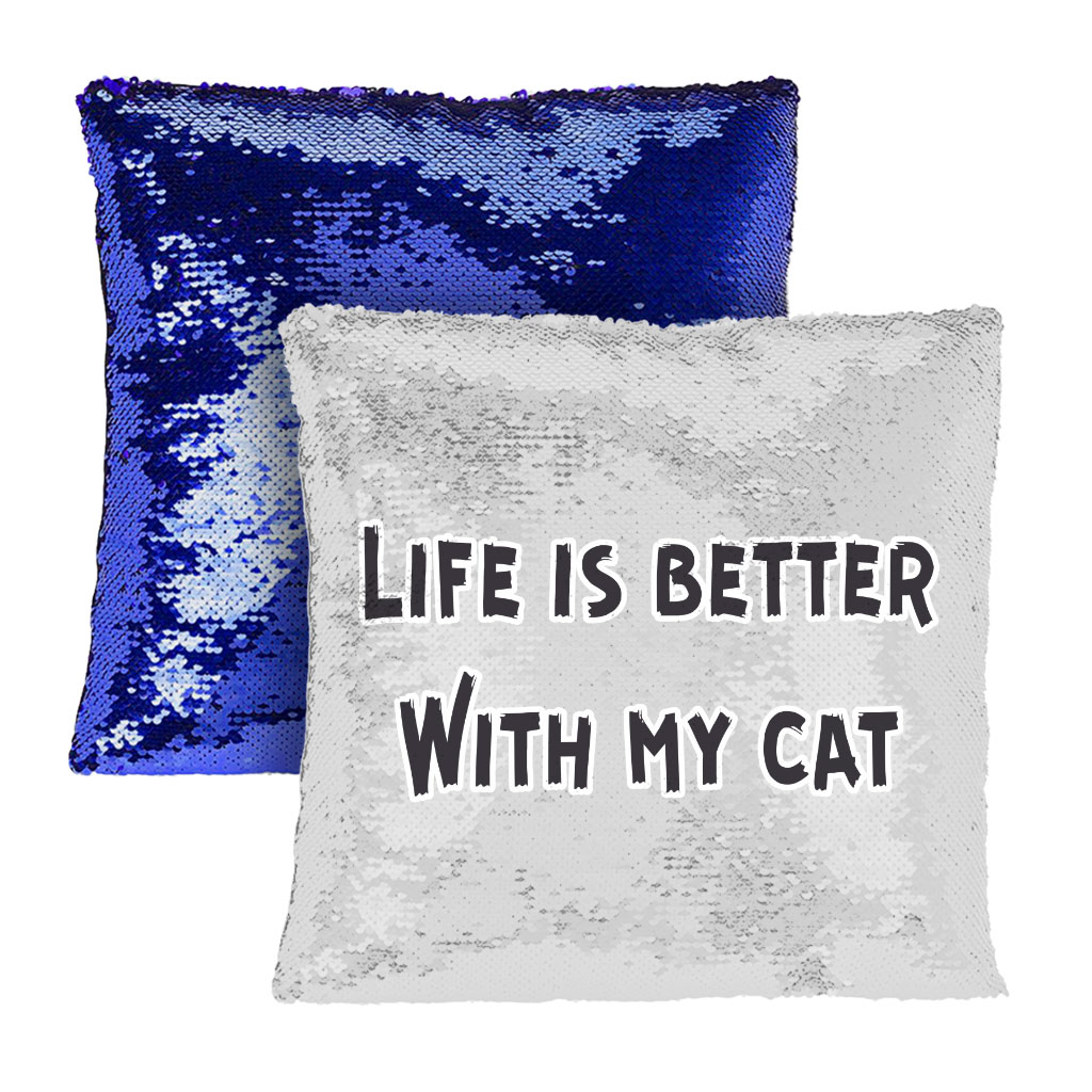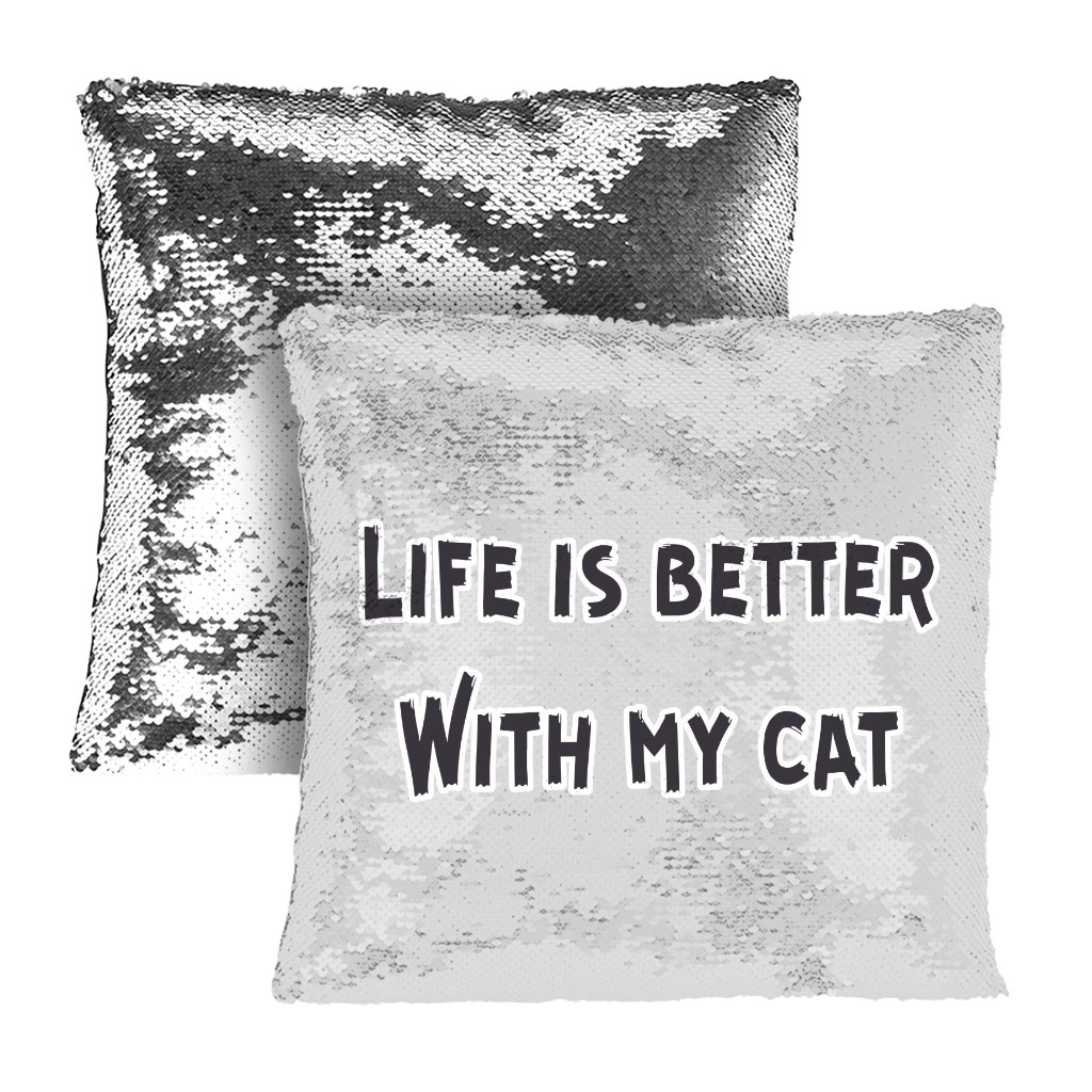Cat Lover Sequin Pillow Case – Cat Themed Pillow Case – Cool Pillowcase