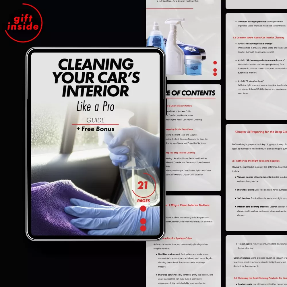 Don’t let stains ruin your car’s look. Download this guide now and start cleaning your car’s upholstery like a pro. With expert tips, smart AI advice, and easy-to-follow steps, you’ll have your car looking spotless in no time!