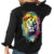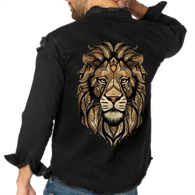 Colorful Lion Men’s Vintage Denim Shirt Distressed – Graffiti Black Denim Shirt – Art Print Denim Shirt for Men