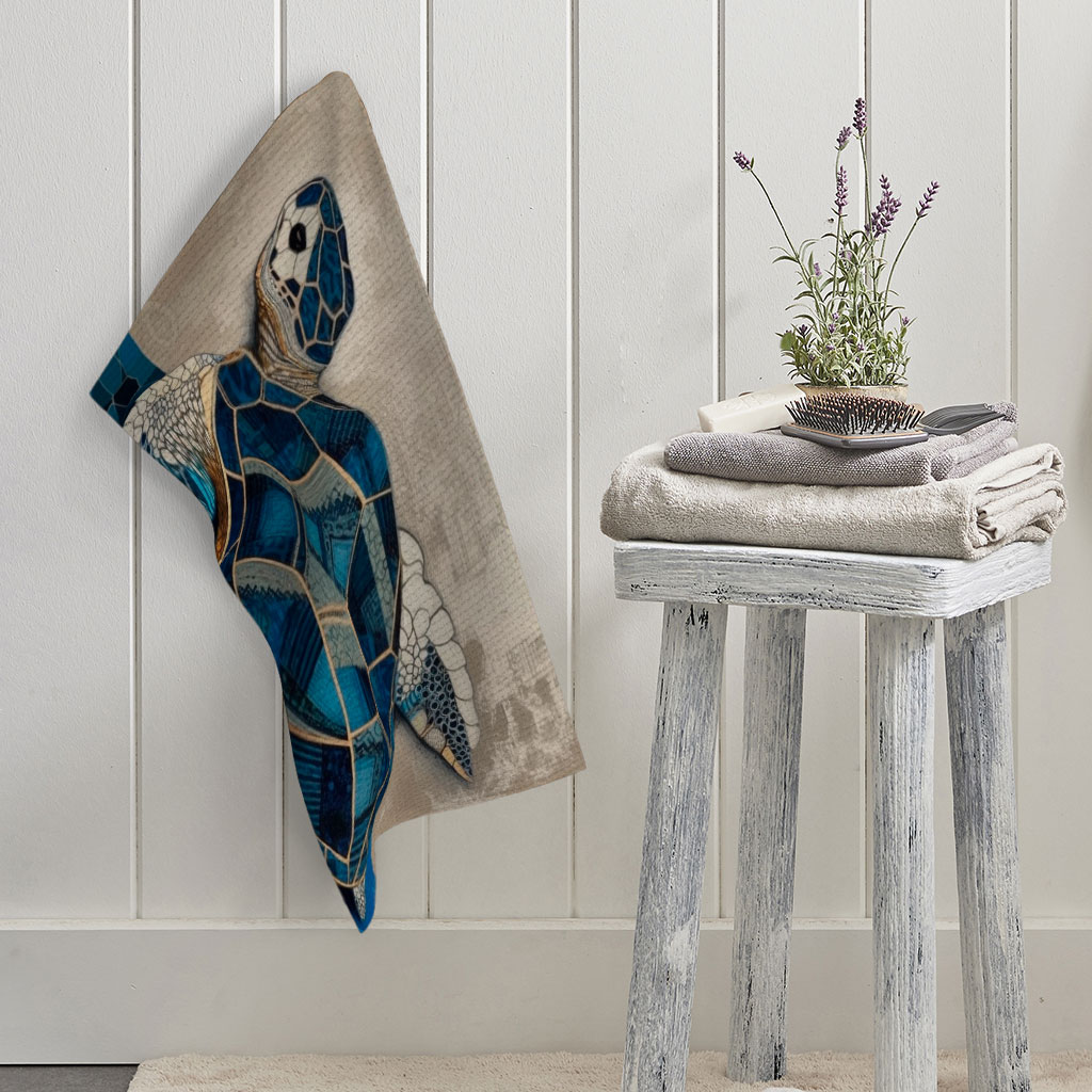 Cute Turtle Soft Towel – Sea Themed Bath Towel – Graphic Towel for Bathroom