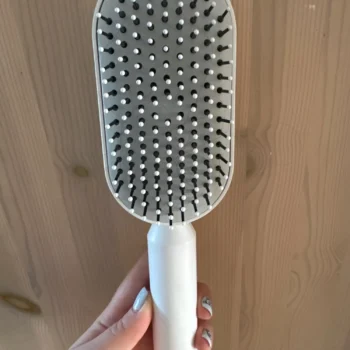 I've been rocking this brush for a few weeks now, and let me you, it's one of the smartest buys I've made in ages. The detangling feature is smooth as butter but still does its job right, even on my thick-as-a-brick, coarse hair. It glides through like a dream without any of that nasty pulling or breaking. Now let's talk about the scalp massage aspect - pure bliss! Every morning feels like a trip the spa with this baby in hand. It works its magic on your scalp making you feel relaxed and ready to start your off right. Talk about self-care! Living where humidity rules supreme can be tough on my hair causing frizz galore. But thanks to this gem and its anti-static material, those frizzy bad hair days are becoming history! This little detail is an absolute game-changer for anyone who knows what it’s like battling with unruly locks daily. But hold up cause there's more! What really makes this product shine brighter than a diamond is the one-key self-cleaning system. Seriously y'all, cleaning has never been easier or more convenient; no more wrestling with hairs tangled around bristles till kingdom come! Just press that button and voila - all clean! So if you're tired of struggling with stubborn knots every morning or just want something that'll give your scalp some love while keeping frizz under control – look no further than this brush here folks because it ticks all those boxes plus some extra ones too!