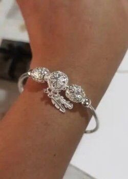 I absolutely adore my Dream Catcher Bracelet! It's simple yet so elegant, and the shiny silver color is stunning. I love that it’s adjustable, fitting perfectly on my wrist. It pairs beautifully with any outfit, whether I wear it alone or stacked with other bracelets. Truly a versatile and stylish piece