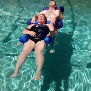 I saw this picture of slender women on this float and doubted it could hold me, but I was wrong. I can't praise this chair enough. The adjustable straps are a game changer! I had a sturdier canvas chair I loved but it wore out. I've nicknamed this my 'coma chair'. Thrilled to have found another one!