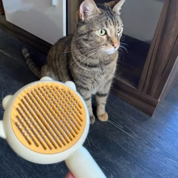 This comb has revolutionized our pet care routine! The curved bristles are perfect for getting under my cat's thick coat, removing loose hair without causing any discomfort. It's clear that it's been designed with both pet and owner in mind, from the non-slip handle that ensures a firm grip to the innovative self-cleaning mechanism that makes maintenance a snap. I've noticed a significant reduction in shedding around the house, and my cat seems happier and more relaxed after each grooming session.