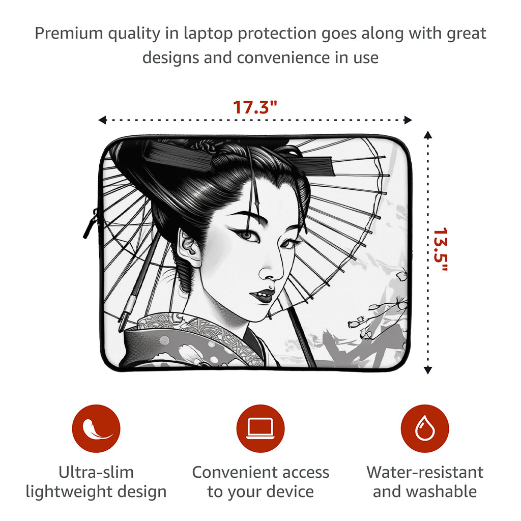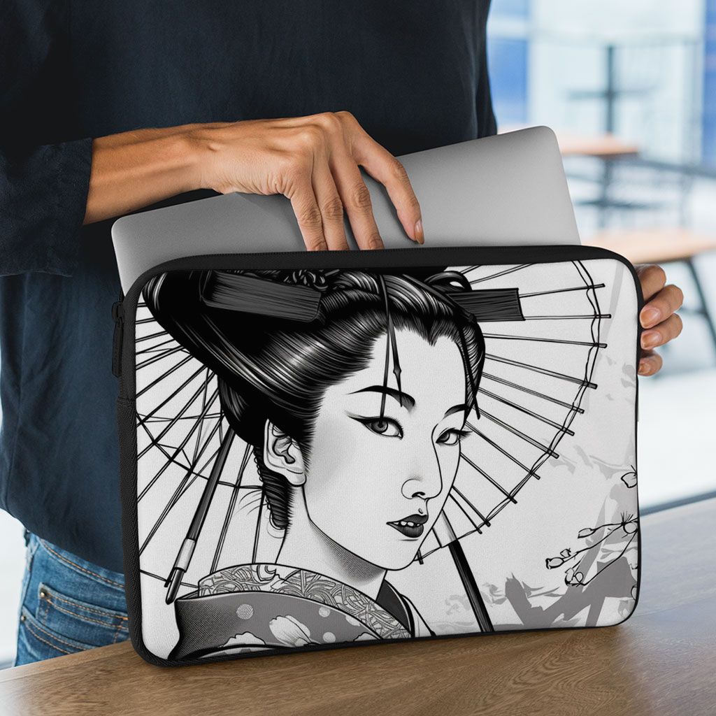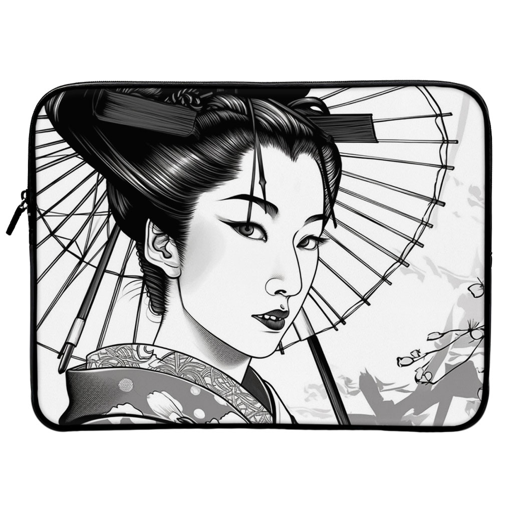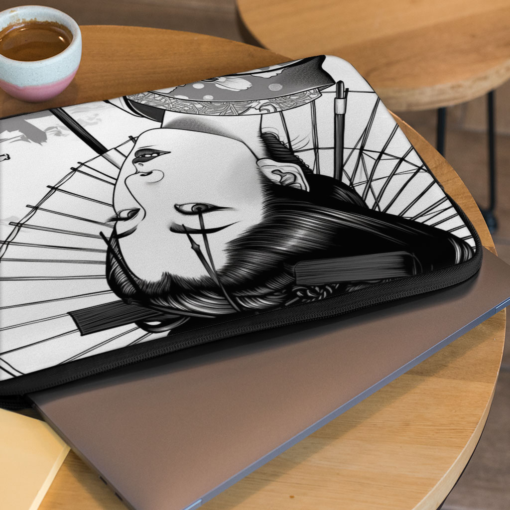 Geisha 2-Sided Print 16″ Laptop Sleeve – Portrait Laptop Sleeve – Illustration Laptop Sleeve with Zipper