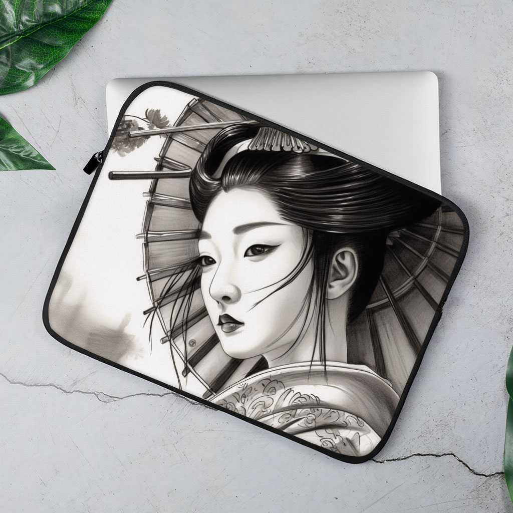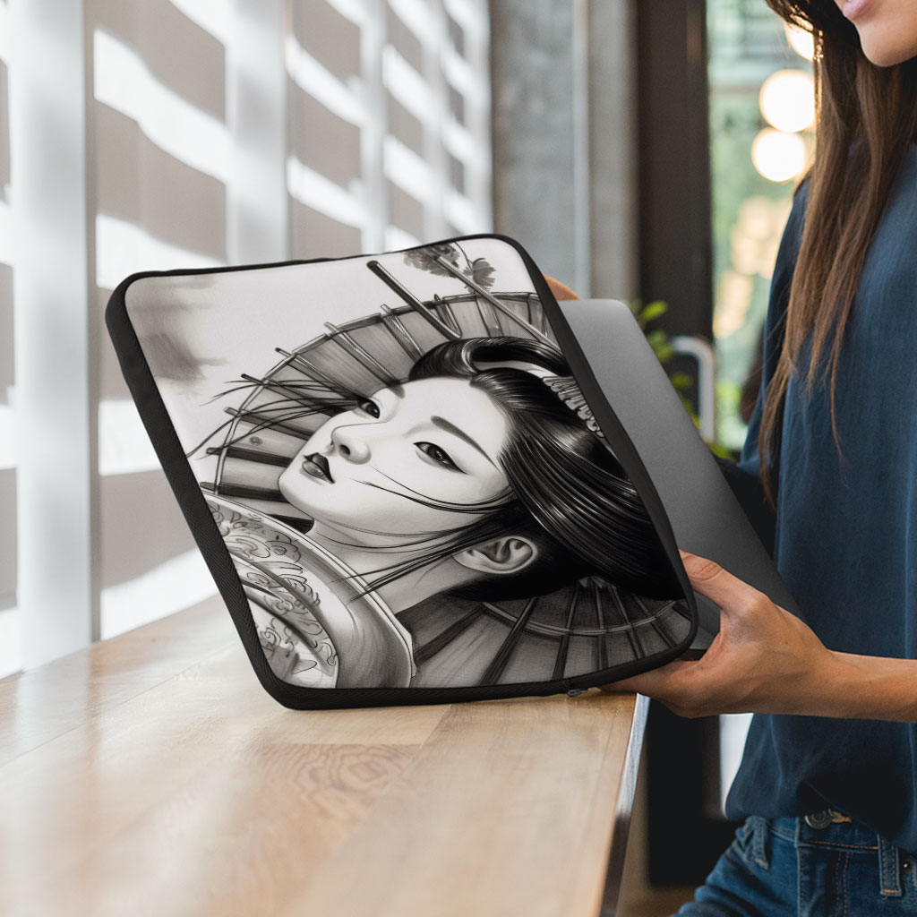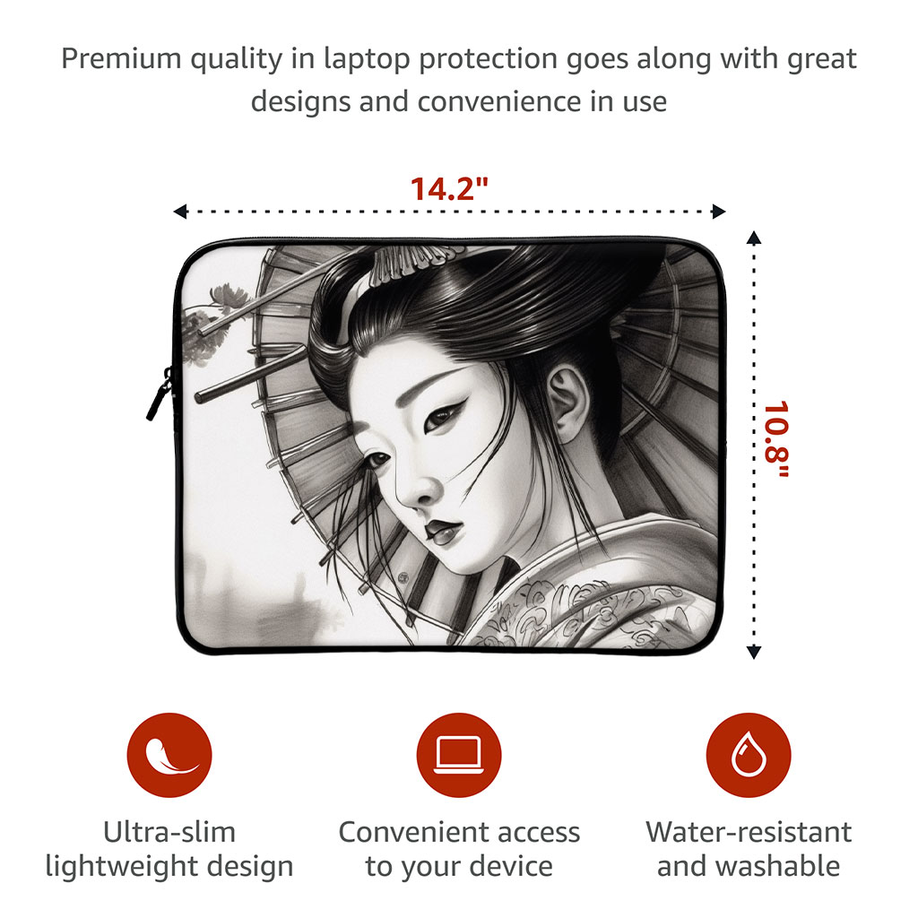 Geisha Girl 2-Sided Print Mac Book Pro 14″ Sleeve – Japanese Design Laptop Sleeve – Cute Mac Book Sleeve