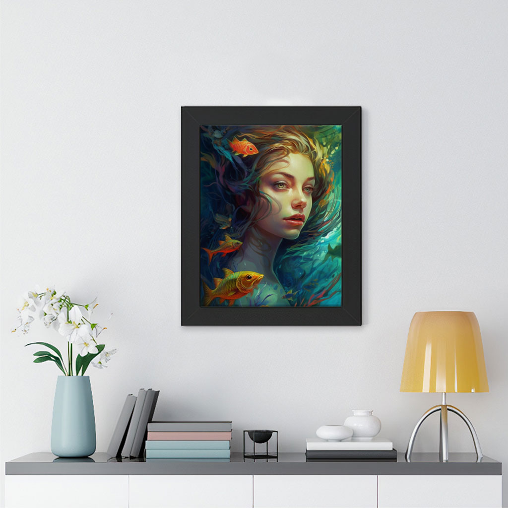 Girl Art Framed Vertical Poster – Sea Themed Art Print – Unique Wall Poster