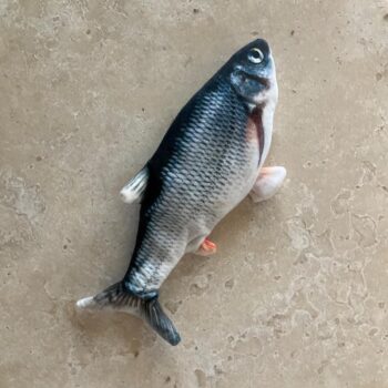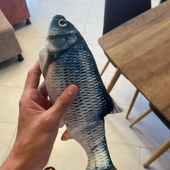 The plush part seems professionally made, including the zipper. The printed design looks like a real fish, and the realistic flopping action is quite lifelike. It flops for 10-15 seconds when tapped, kicked, or dropped, then stops until it's nudged again. There's an on-off switch for when it's not in use. I love that it's USB rechargeable, no need for batteries.