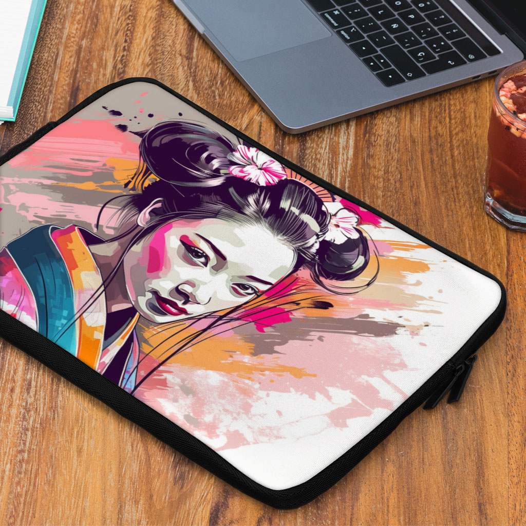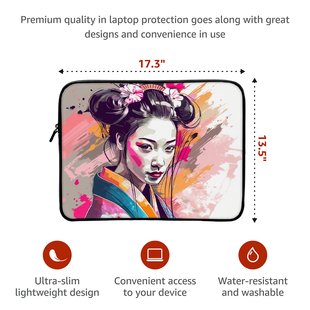Japanese Art 2-Sided Print Mac Book Pro 16″ Sleeve – Cute Girl Laptop Sleeve – Themed Mac Book Sleeve