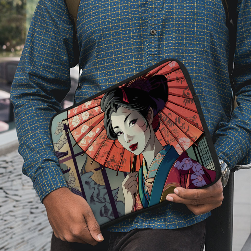 Japanese Print 16″ Laptop Sleeve – Cartoon Laptop Sleeve – Graphic Art Laptop Sleeve with Zipper