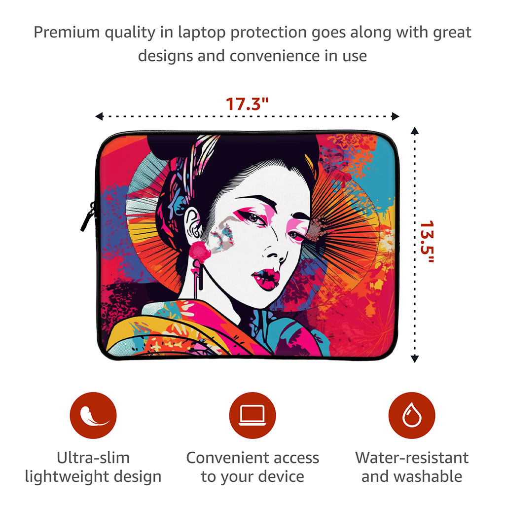 Japanese Style 2-Sided Print 16″ Laptop Sleeve – Colorful Laptop Sleeve – Geisha Laptop Sleeve with Zipper