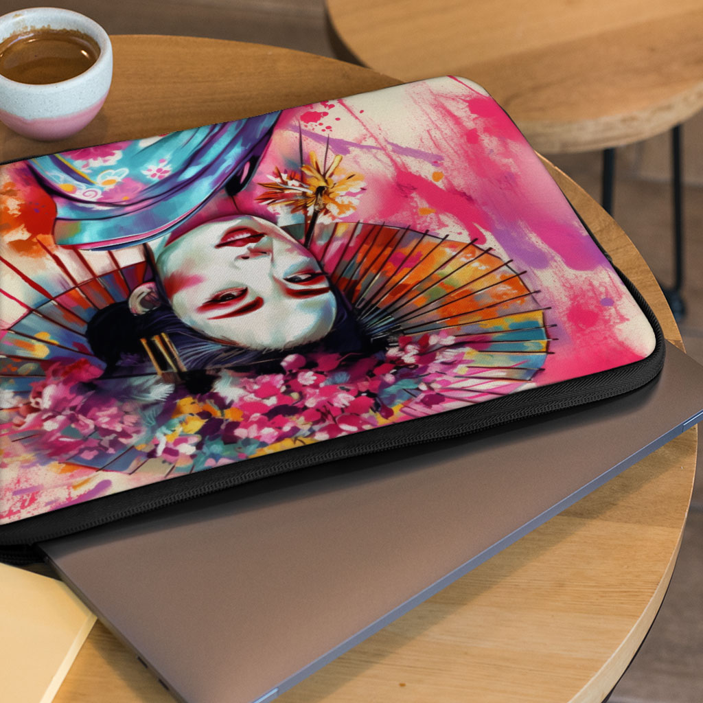 Japanese Themed 2-Sided Print 16″ Laptop Sleeve – Watercolor Laptop Sleeve – Cool Art Laptop Sleeve with Zipper