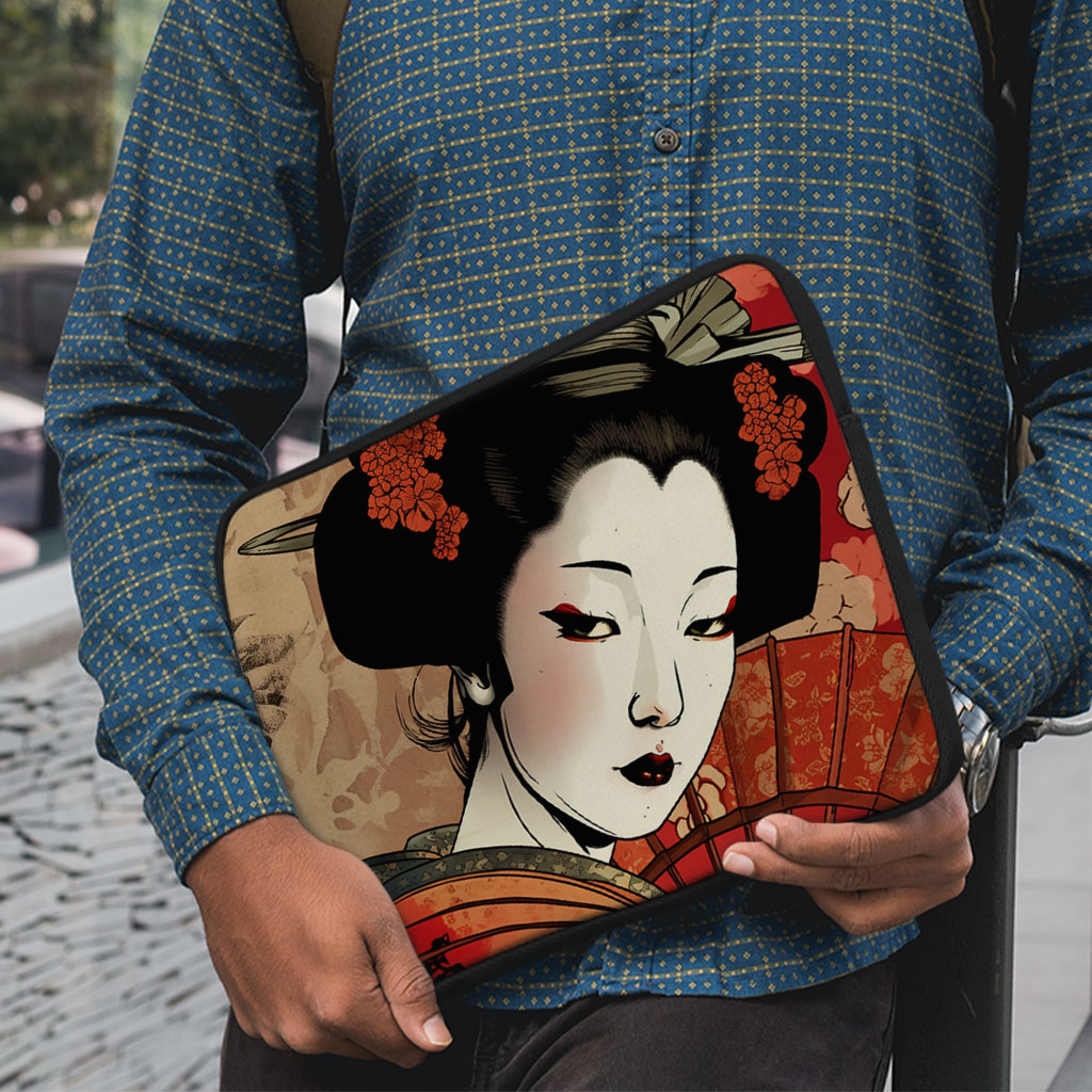 Japenese Geisha 16″ Laptop Sleeve – Printed Laptop Sleeve – Cute Design Laptop Sleeve with Zipper