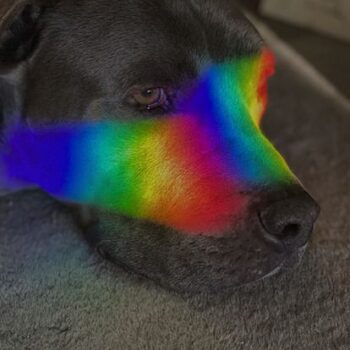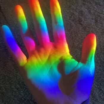 When I looked out the window through the prism, I was able to see multiple rainbows inside it, each spanning the entire length of the prism, with several rainbows stacked beneath one another.