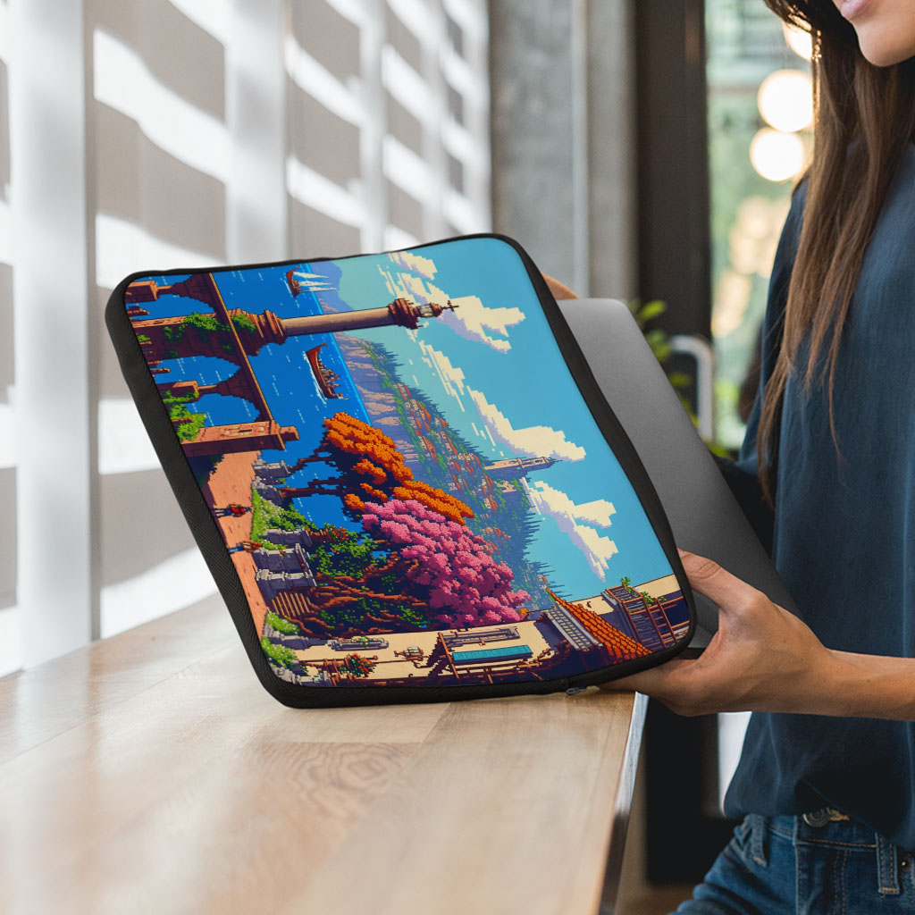 Landscape Art 2-Sided Print Mac Book Pro 14″ Sleeve – Pixel Design Laptop Sleeve – Themed Mac Book Sleeve