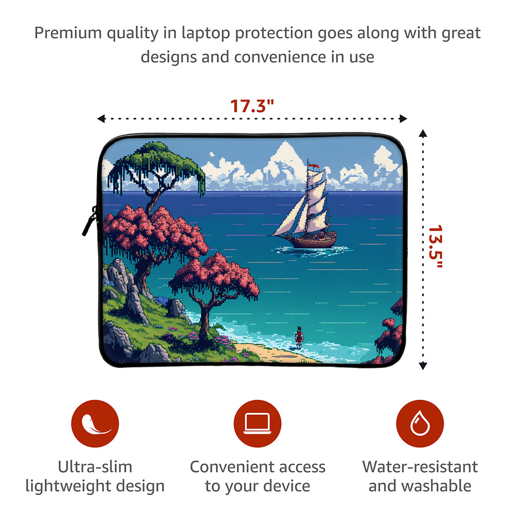 Landscape Print 2-Sided Print Mac Book Pro 16″ Sleeve – Pixel Art Laptop Sleeve – Graphic Mac Book Sleeve