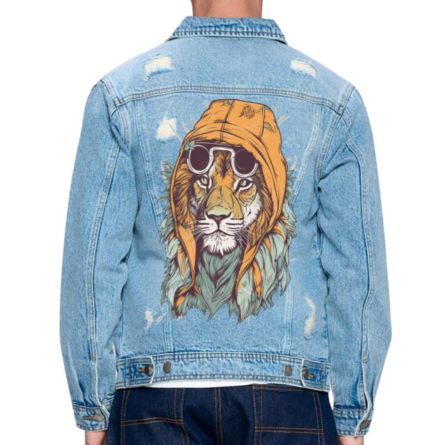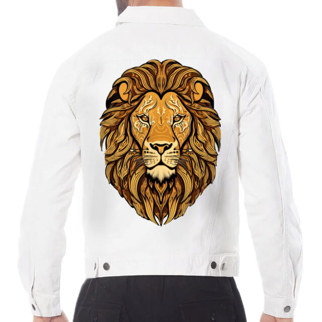Lion Face Dark Washed Men’s Denim Jacket is made with comfort in mind, this relaxed-fit classic denim jacket can be worn alone or with layers on cooler days. With room through the torso, you won’t feel restricted in movement.