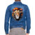 Lion Face Dark Washed Men’s Denim Jacket – Geometric Denim Jacket – Cool Graphic Jacket for Men