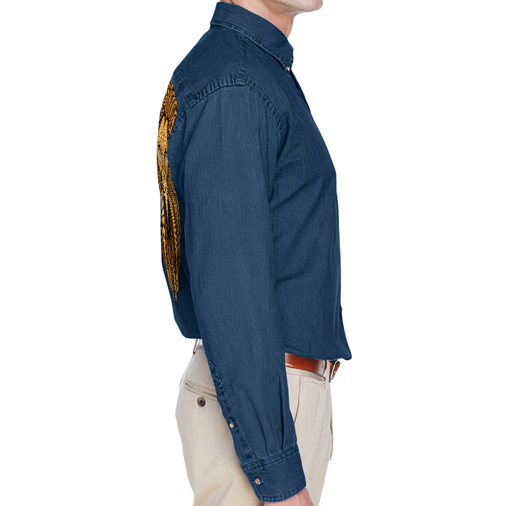 Lion Face Print Men’s Denim Shirt – Unique Design Denim Shirt – Graphic Art Long Sleeve Shirt