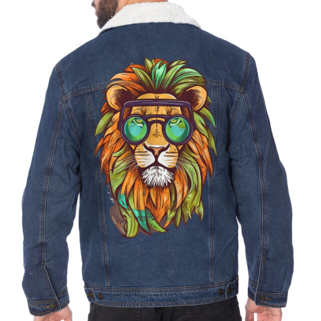 Lion Print Men’s Sherpa-Lined Denim Jacket is made of premium quality denim that flexes and moves with you, made with our famous riveted strength. Super stretch denim lasts from day to night and its snug fit doesn’t loose the shape.