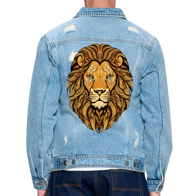 Lion Wearing Glasses Men’s Distressed Denim Jacket – Cool Denim Jacket for Men – Printed Denim Jacket