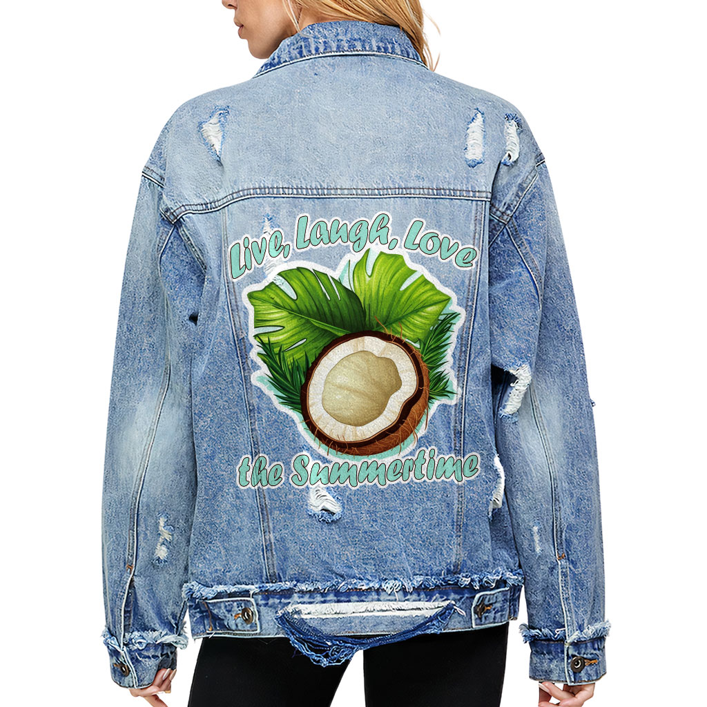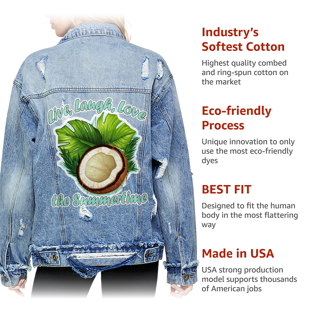 Live Laugh Love Women’s Oversized Denim Jacket – Summertime Ladies Denim Jacket – Cool Design Denim Jacket