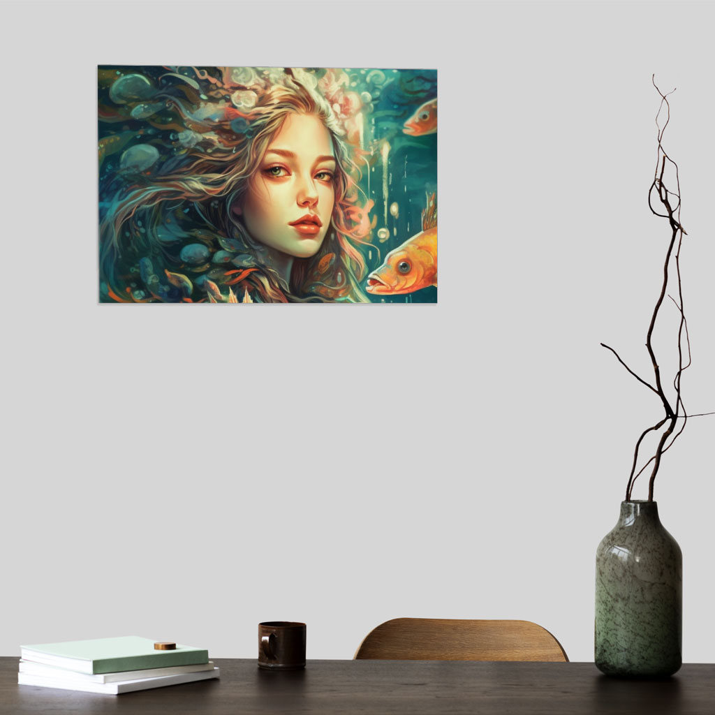 Mermaid Art Horizontal Matte Poster – Pretty Art Print – Graphic Art Print
