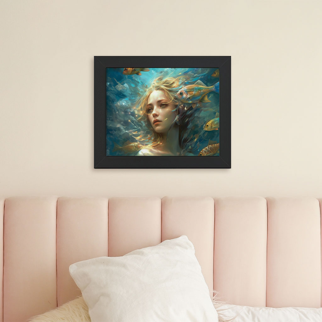 Mermaid Framed Horizontal Poster – Underwater Art Print – Illustration Wall Poster