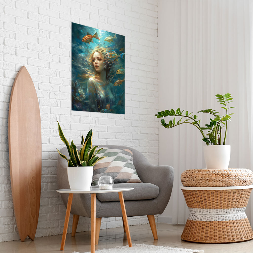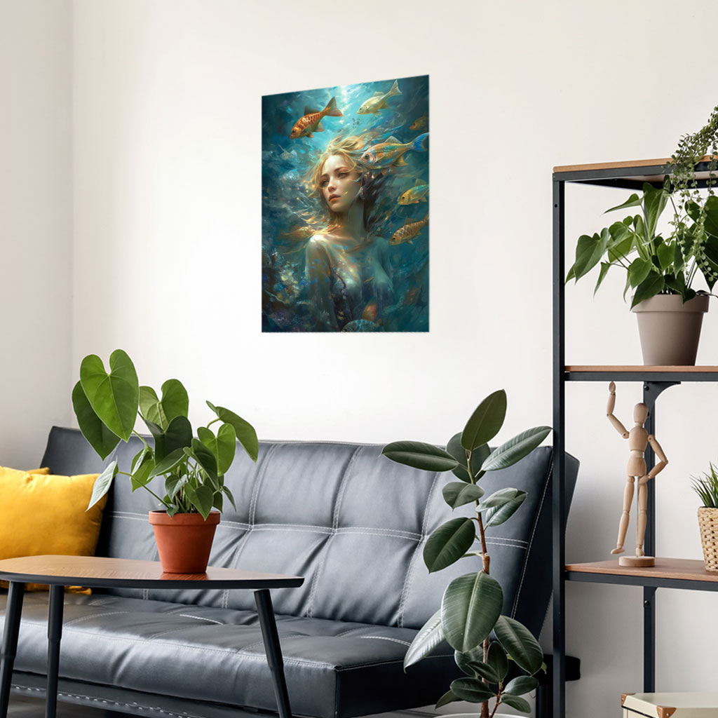 Mermaid Uncoated Vertical Poster – Underwater Art Print – Illustration Wall Poster