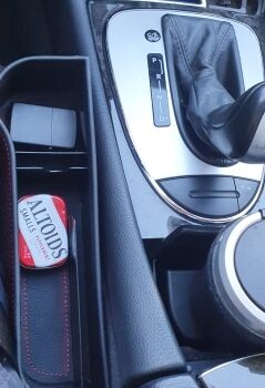 This is a wonderful simple idea for storage space need when driving. It can go on either side, drivers or passengers. It holds my phone, my drink & It even has a slit to hold Credit cards. So Worth it.