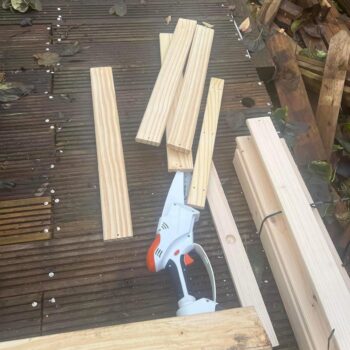 I loved how easy this chainsaw is to use. It cut through jobs that used to take me four or five times as long. The only improvement that could be made is the button you push to unlock the mechanism is uncomfortably far from the “trigger” if you have small hands. It’s probably a safety feature but it’s forces the use of two hands.