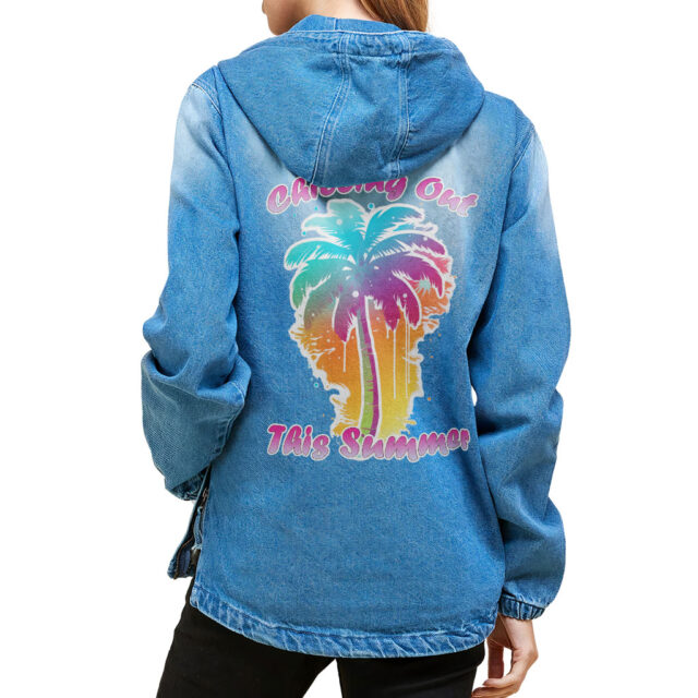 Paradise Women’s Sherpa Denim Jacket – Floral Ladies Denim Jacket – Graphic Denim Jacket
