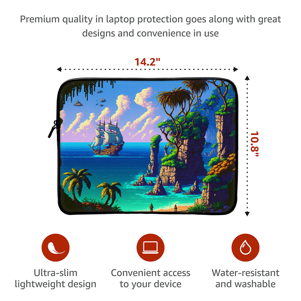 Pirate Ship 2-Sided Print Mac Book Pro 14″ Sleeve – Beach Laptop Sleeve – Cool Trendy Mac Book Sleeve