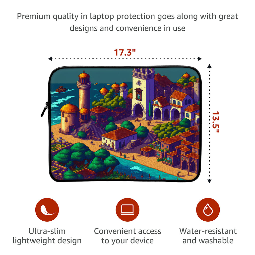 Pixel Design 2-Sided Print 16″ Laptop Sleeve – Video Game Laptop Sleeve – Unique Laptop Sleeve with Zipper
