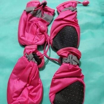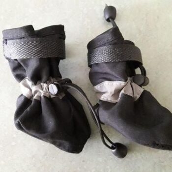 The rustling fabric is perfect for tracking my dog's movements, and they fit our Cocker Spaniel well. They're effective against puddles, keeping paws mostly dry.