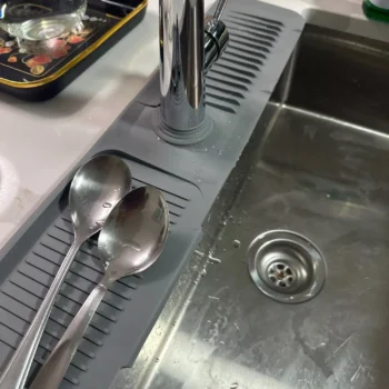 I'm thoroughly impressed with this mat! It's been a total game-changer in my kitchen. Before I had this, I was constantly battling water splashes and stains around my faucet area. Now, my counters stay dry and clean, and the silicone material makes it so easy to just wipe down or even toss in the dishwasher. Plus, it's durable and flexible, fitting snugly around my faucet base. A simple, yet brilliant solution!