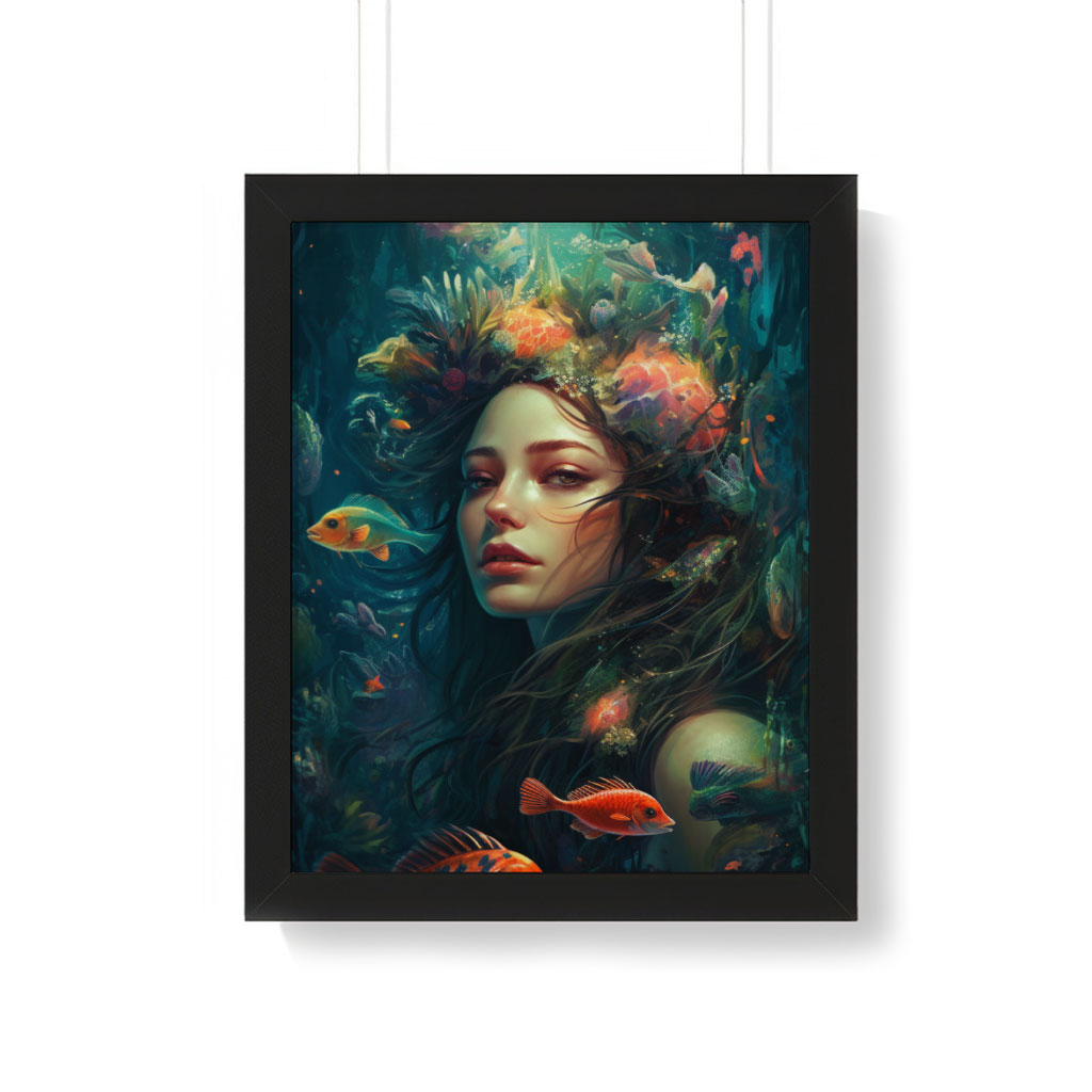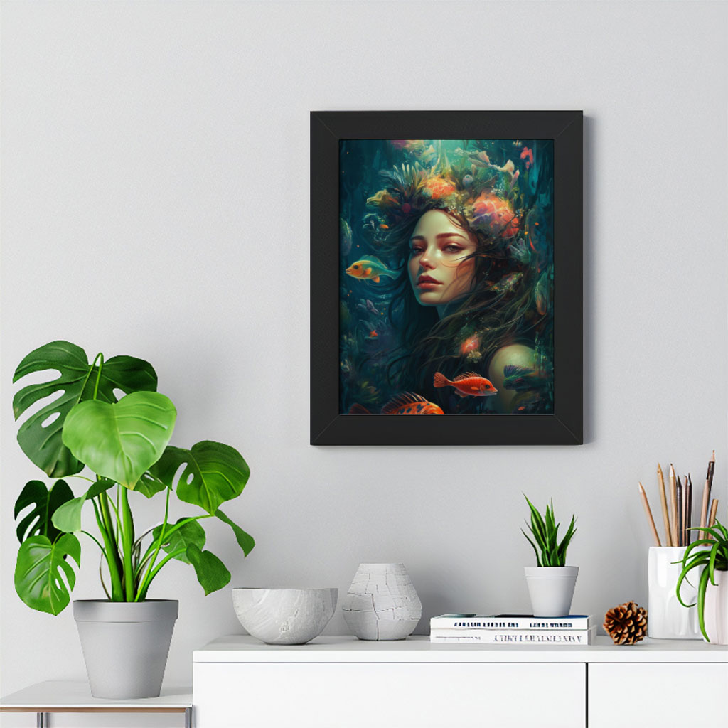 Pretty Girl Framed Vertical Poster – Mermaid Art Print – Cute Wall Poster