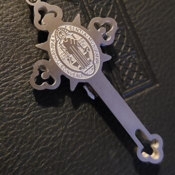 Devotion Through Prayer: In keeping with tradition, when using the St. Benedict medal or cross-medal for protection, it is customary to recite five Gloria Patri in honor of Jesus’ Passion, three Hail Marys in veneration of the Blessed Virgin Mary, and a Lord’s Prayer to Saint Benedict. For a deeper spiritual connection, these prayers are recommended daily.