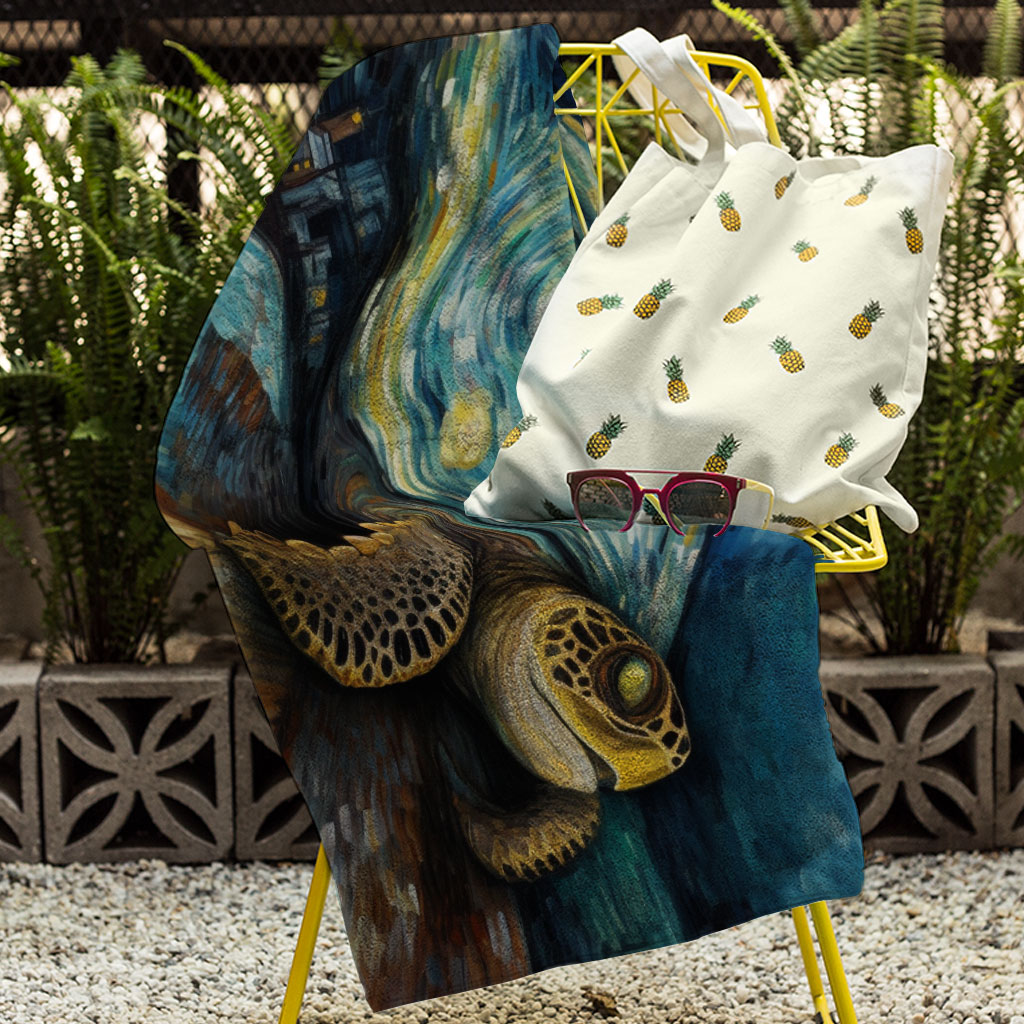 Sea Turtle Design Beach Towel – Cool Art Pool Towel – Cute Absorbent Towel