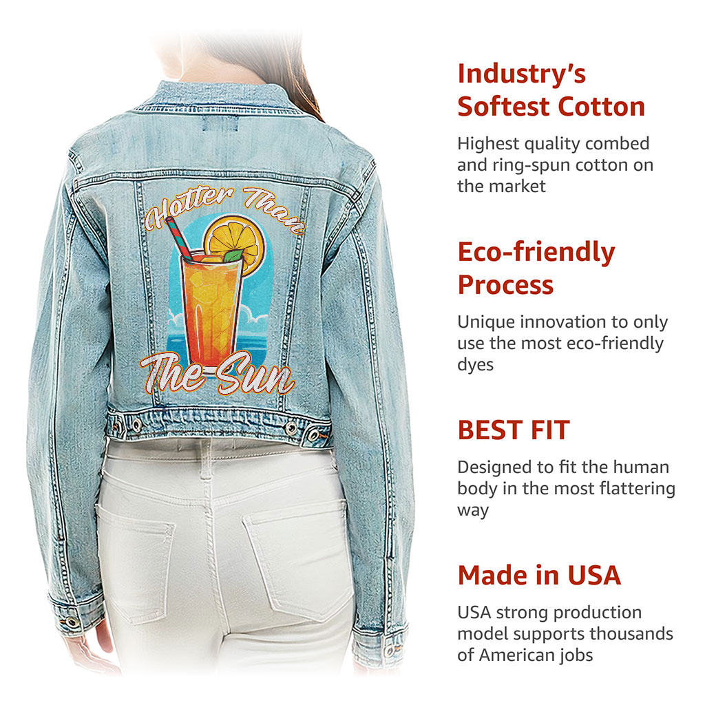 Summer Design Cropped Ladies’ Denim Jacket – Cute Women’s Denim Jacket – Printed Denim Jacket