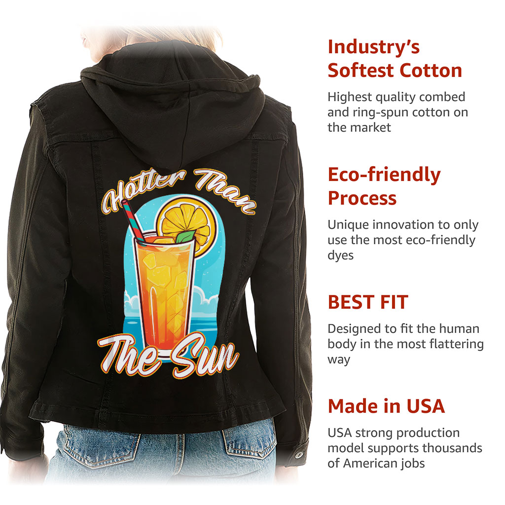 Summer Design Ladies’ Denim Jacket with Fleece Hoodie – Cute Women’s Denim Jacket – Printed Denim Jacket
