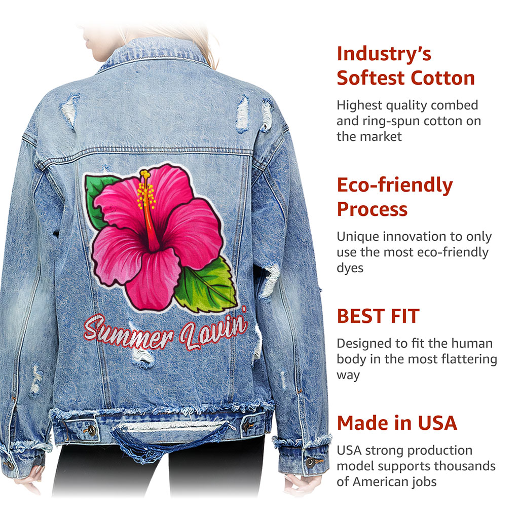 Summer Lovin’ Women’s Oversized Denim Jacket – Flower Ladies Denim Jacket – Printed Denim Jacket