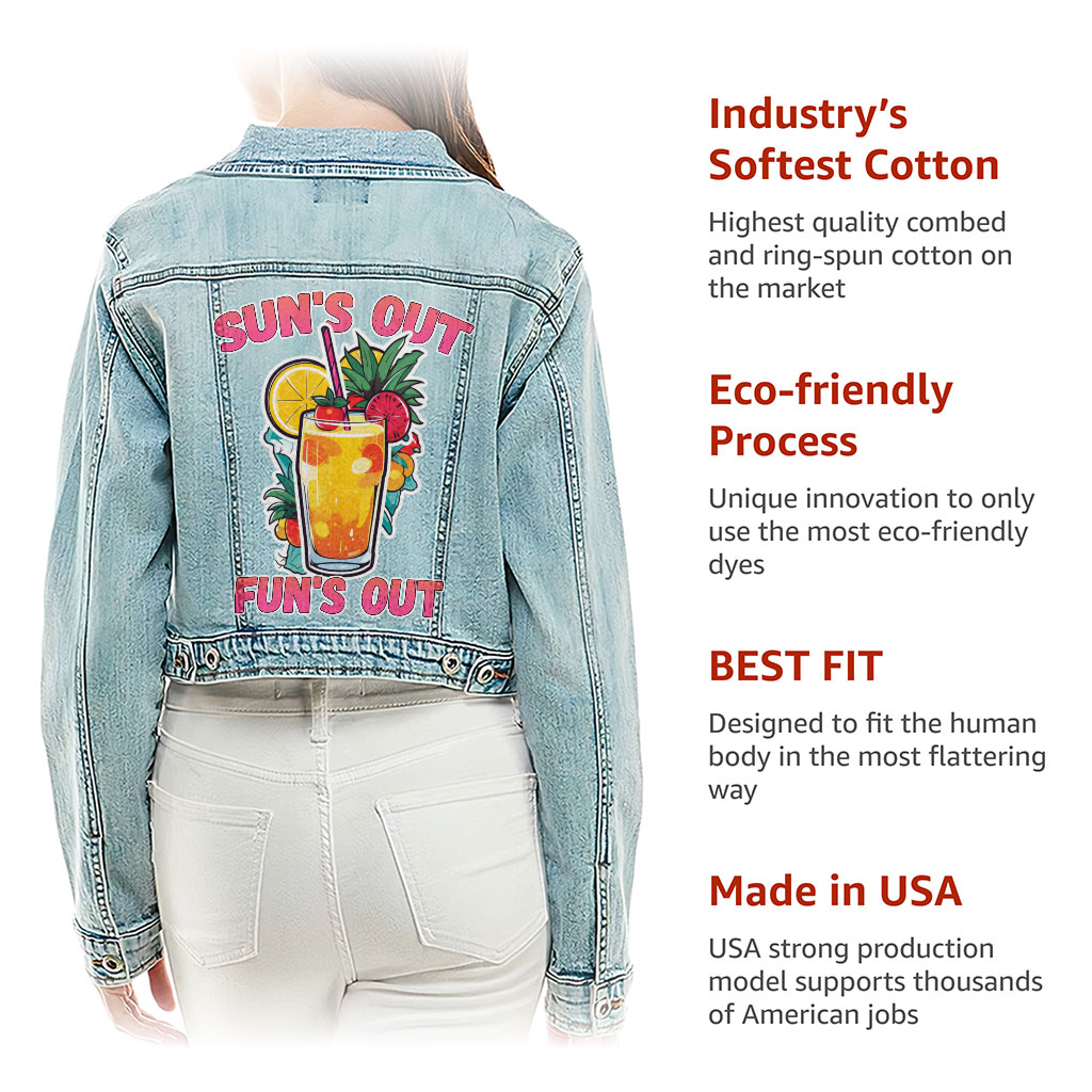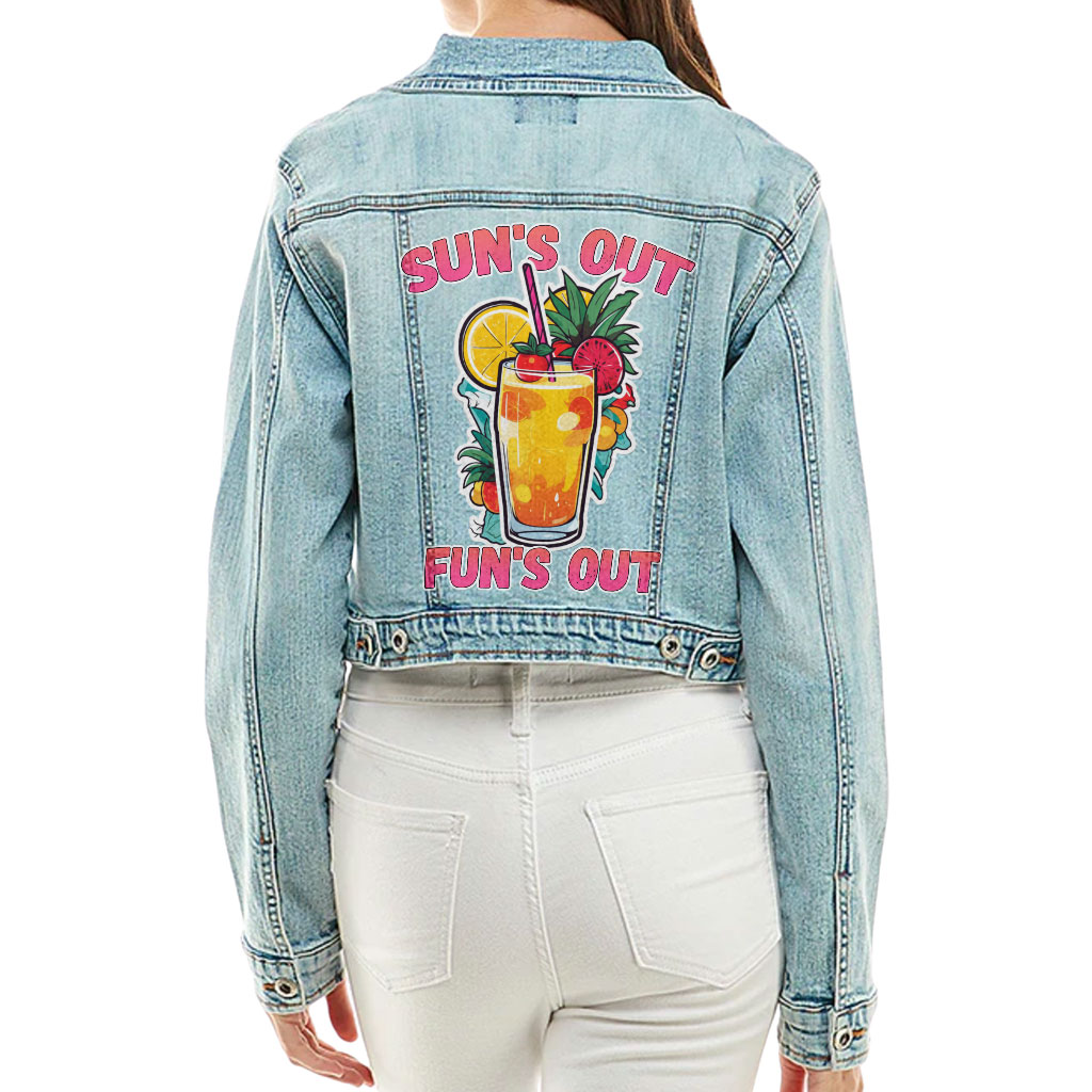 Sun’s Out Cropped Ladies’ Denim Jacket – Cocktail Women’s Denim Jacket – Themed Denim Jacket