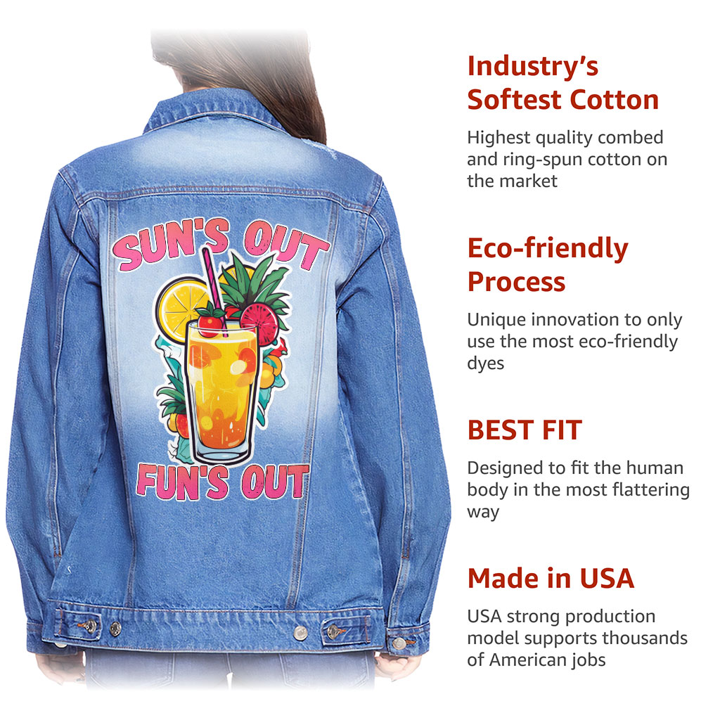 Sun’s Out Women’s Casual Denim Jacket – Cocktail Ladies Denim Jacket – Themed Denim Jacket
