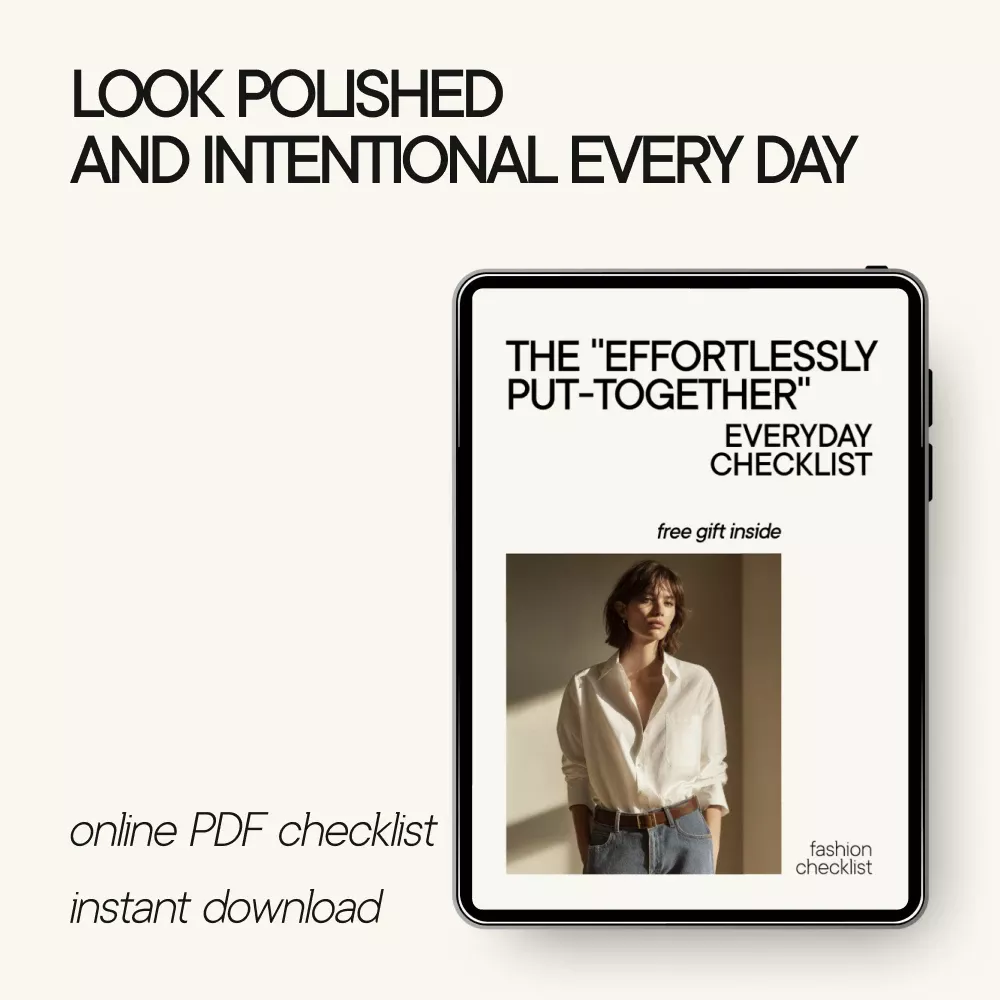 Unlike trend-based style guides, this checklist focuses on intention, proportion, and polish. It’s practical, realistic, and designed to be used daily—no shopping lists, no pressure, just a clear system that works.