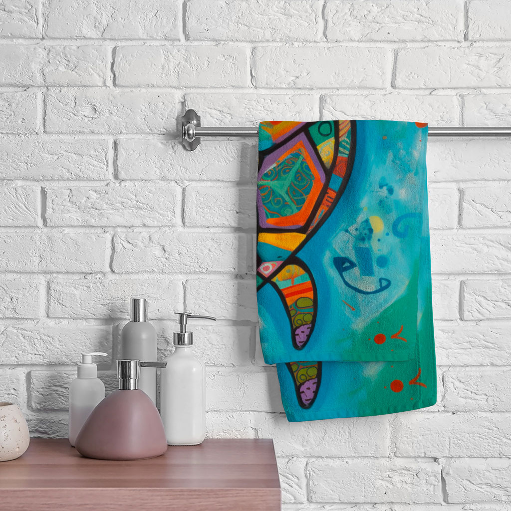 Turtle Polycotton Towel – Unique Bath Towel – Cool Bathroom Towel