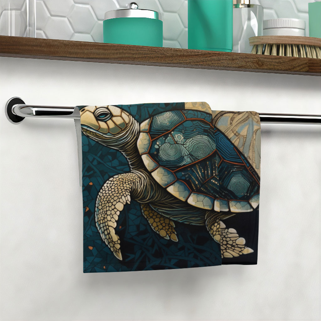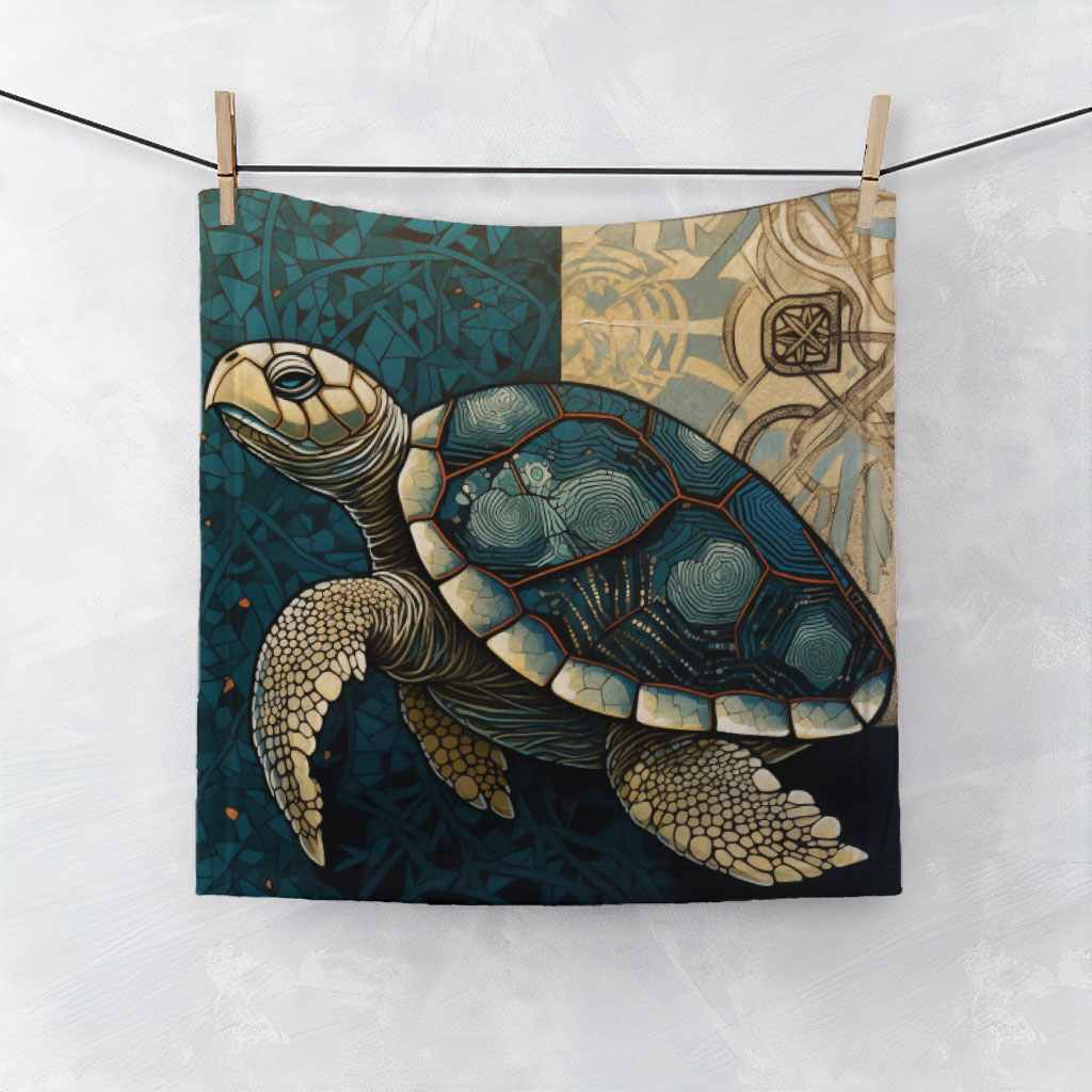 Turtle Print Face Towel – Artwork Bath Towel – Trendy Face Cloth